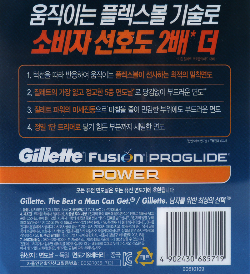 질레트 플렉스볼 파워 면도날 기획 8입+면도기