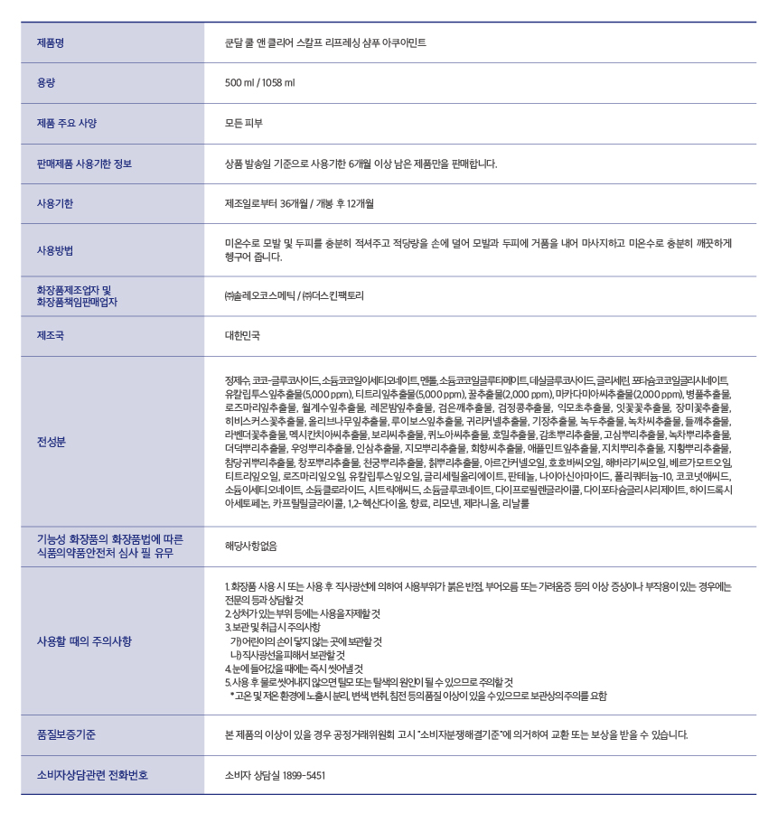 쿤달 쿨샴푸 아쿠아민트 500ml