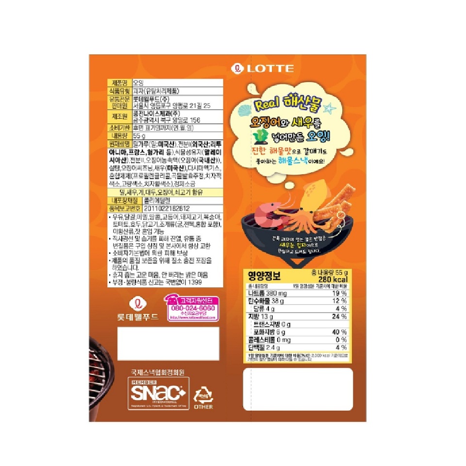 롯데웰푸드 오잉 해물맛 55g