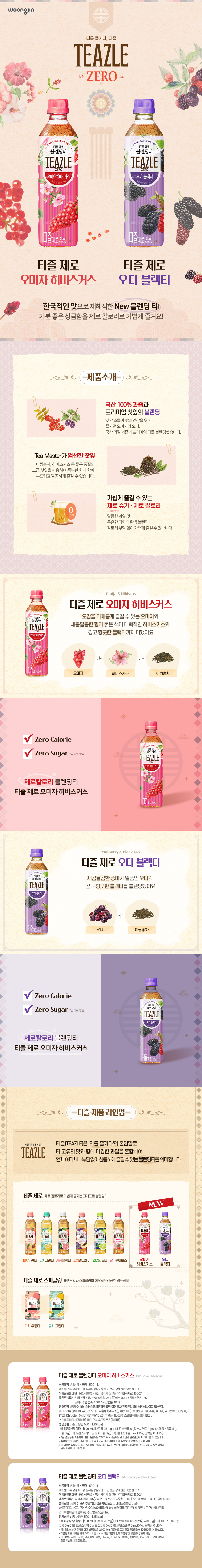 웅진 티즐 제로 오미자 히비스커스 500ml